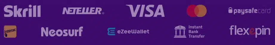 Dépôts : Visa, MasterCard, Neteller, Skrill, Paysafecard, virement, Interac (15+ options). Min 20€, instantané. Retraits : mêmes méthodes, min 50€, délais 24h-4 jours selon méthode. Aucun frais.